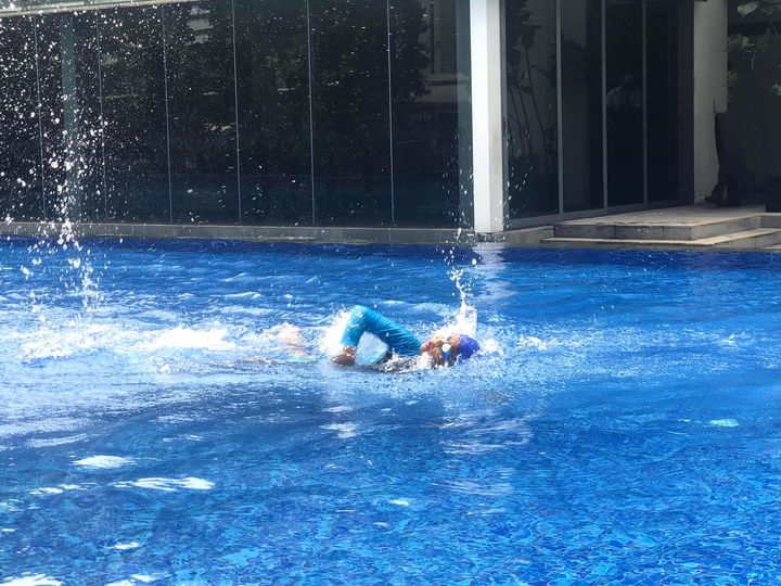 I define exercise by making you sweat and increase your heart beat. You might be asking why do you define it like that? I define exercise like that because it takes hard work and it is tiring. If it is hard work then it will help you push through hard tasks you have. Of course if you have just got the vaccine DON’T exercise please do only exercise after 2-3 weeks after you are fully vaccinated. DISCLAIMER the time you have to rest is different according to different vaccines and countries. I am not a professional doctor and the time is from sources online. Please consult a professional doctor for more medical information about the vaccine. Now if it is tiring then it could help you sleep better. Here’s a picture of me swimming.